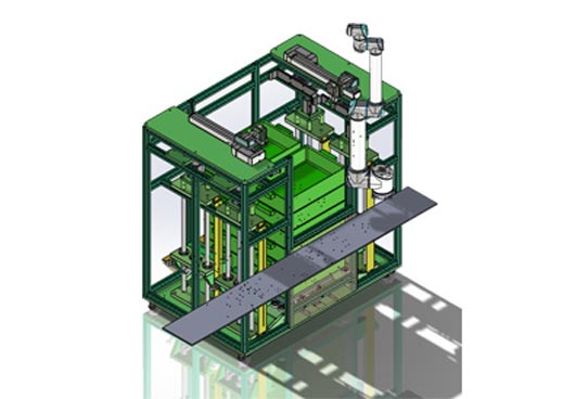 針對設(shè)備機臺的上下料需求,研發(fā)設(shè)計了面向小型零部件的,基于市場標(biāo)準(zhǔn)料箱的自動上料箱系統(tǒng)。
